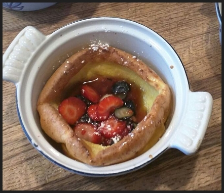 puffed and lightly browned. Divide the berries among the dishes, drizzle with